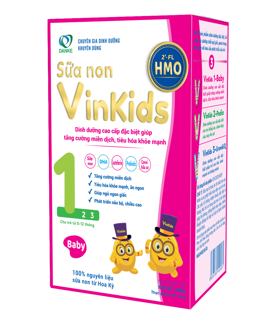 Sữa Vinkids số 1 là sản phẩm chuyên biệt dành cho trẻ từ 0 đến 6 tháng tuổi, chứa hàm lượng cao các kháng thể IgG, IgA và Lactoferrin giúp tăng cường hệ miễn dịch, bảo vệ hệ tiêu hoá non nớt của trẻ và hỗ trợ phát triển chiều cao và não bộ.