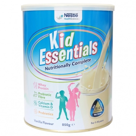 - Sữa Kid Essentials hương vani 850g bổ sung đầy đủ 27 vitamin và khoáng chất thiết yếu cho sự phát triển toàn diện của bé. Hàm lượng vitamin C, E, B6, B12, D3,... có trong sữa giúp bổ sung năng lượng và phát triển thể chất tốt hơn cho bé, đặc biệt phù hợp với các bé lười ăn, chậm tăng cân hay cần bồi bổ sau ốm.